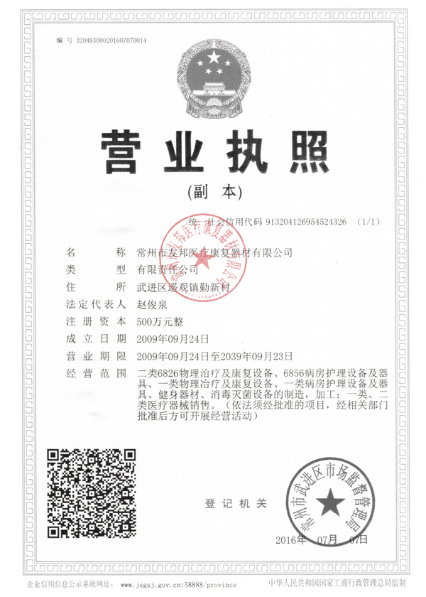 常州市友邦醫(yī)療康復器材有限公司位于江南水鄉(xiāng)常州市遙觀鎮(zhèn), 緊鄰京滬高鐵、滬寧高速公路、沿江高速公路和312 國道,交通十分便利。公司是國內生產(chǎn)康復器材的 大型企業(yè)之一,有著完善的硬件設施和規(guī)范的管理體系。公司借鑒并吸收了業(yè)界康復器材技術,逐漸發(fā)展成為集開發(fā)、生產(chǎn)、銷售于一體的生產(chǎn)企業(yè)。公司現(xiàn)主要產(chǎn)品有牽引治療儀系列、步態(tài)訓練系列、上下肢運動系列、全身運動系列、水療系列、兒童康復系列等多個系列產(chǎn)品。